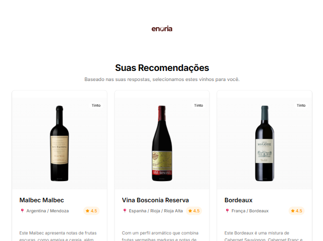 Do iniciante ao conhecedor, o Enoria se adapta ao nível de conhecimento de cada cliente.
